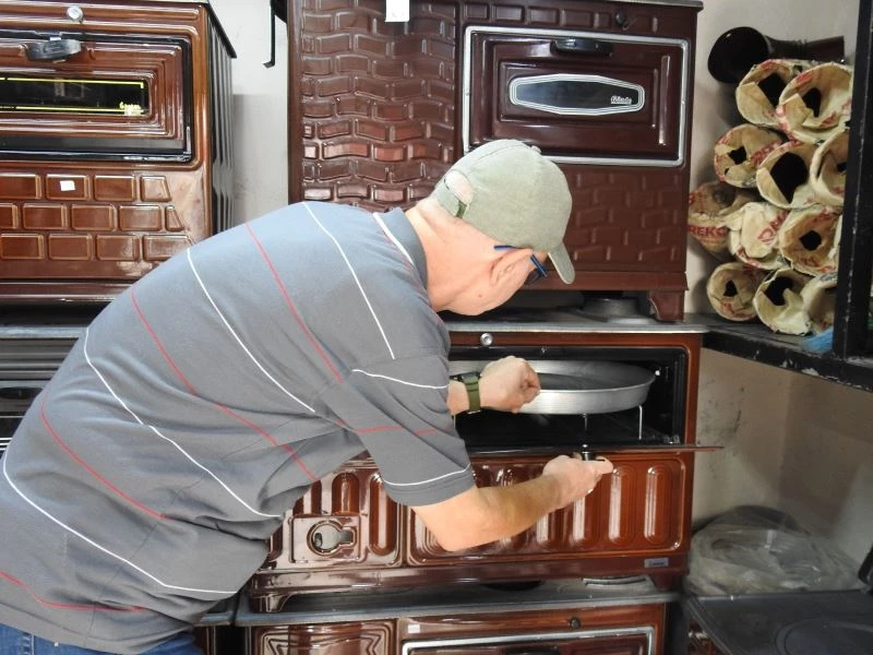 Çeşitli sobaları olduğunu aktaran Emre Nurlu, “Kovalı tarzda, tuğlalılar var, Pekça dediğimiz fırınlı sobalarımız var. Doğalgazın gelmesinden sonra tuğlalı sobalarda biraz azalma oldu. Genelde kovalı ve fırınlı sobalar tercih ediliyor. Yemeğini içinde yapma gibi bir avantajı oluyor. İki amaçlı da ekonomik bir soba” dedi.