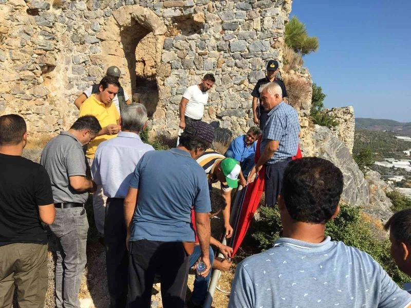 Mersin’in Bozyazı ilçesinde 29 Ekim Cumhuriyet Bayramı etkinlikleri çerçevesinde ilçe merkezindeki kalede bulunan Türk bayrağı yenilenerek göndere çekildi.
