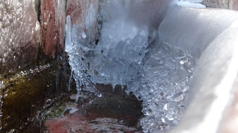 Ardahan’da soğuk hava nedeniyle nehir, dere ve çeşmeler buz tuttu.