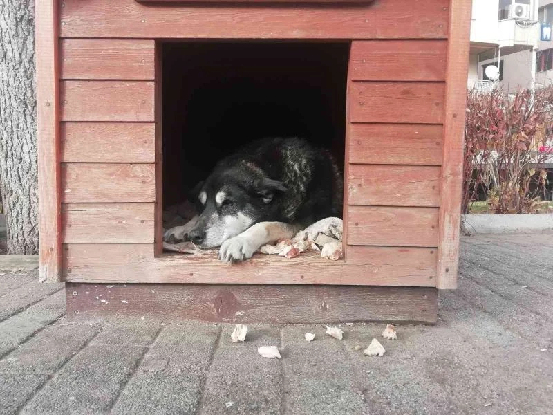 Eskişehir’deki kuru soğuk hava insanlar kadar sokak hayvanlarını da etkiledi, hayli üşüyen birçok köpek kulübelerine çekildi.
