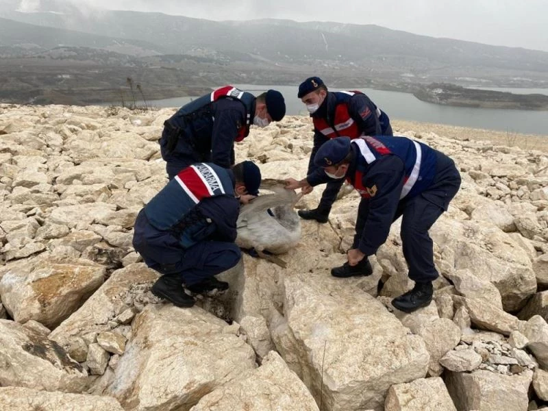 Soğuktan donmak üzere olan yaralı pelikanı jandarma kurtardı