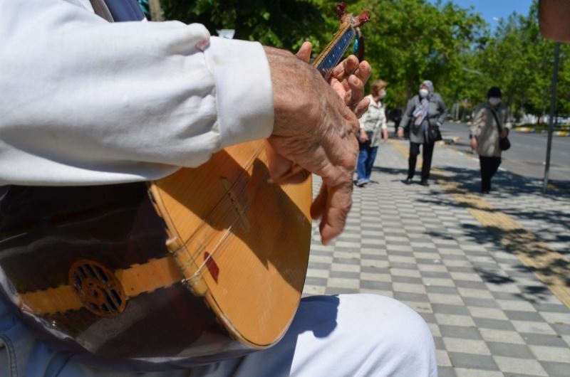Tekirdağ’da daha önce sahil alanda saz çalan 75 yaşındaki Hamdi Sadeler, sokağa çıkma izninde dışarı çıkıp diğer yaşlılara saz çaldı.