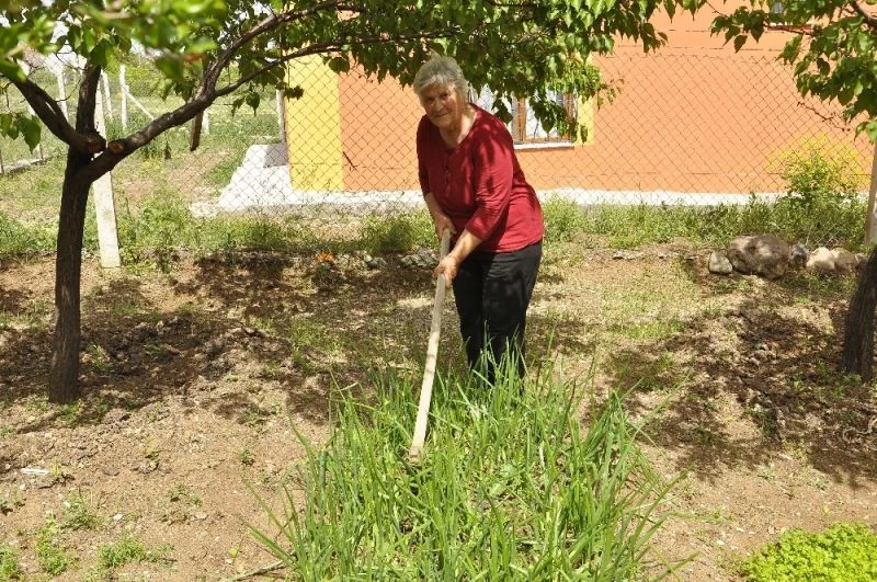 Malatya’da yaşlı bir kadın, yeni tip korona virüs nedeniyle sokağa çıkamayınca evinin bahçesinde sebze yetiştirmeye başladı.