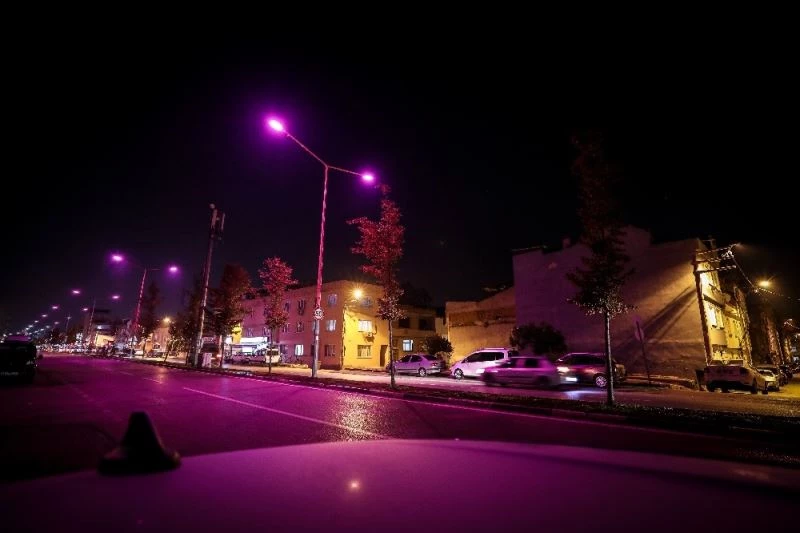Sokak lambalarının pembe yandığını gören vatandaşlar şaşkınlığını gizleyemedi.