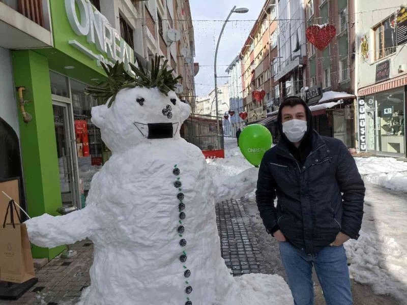 Özellikle ara sokaklarda bulunan esnafların işyerleri önlerine yaptıkları kardan adamlar renkli görüntüler oluşturdu. Müzik aletleri satan bir işyeri yaptığı kardan adamın üzerine gitar koyarken, başka bir işyeri ise korona virüse dikkat çekmek için yaptığı kardan adama maske taktı.