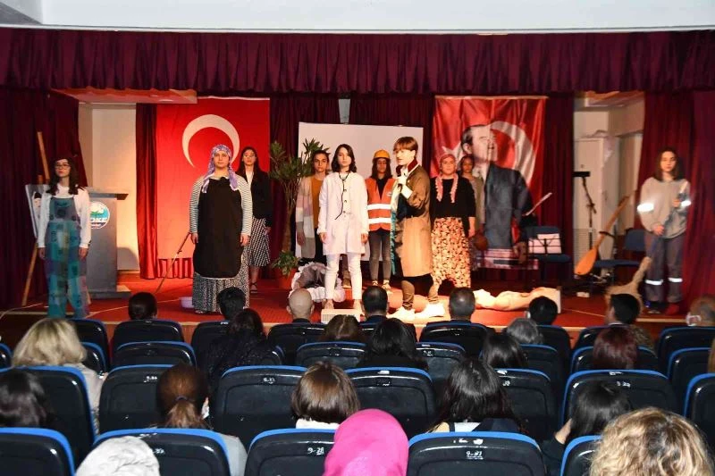 Saygı duruşu ve İstiklal Marşı’nın söylenmesi ile başlayan etkinliğin açılış konuşmasını Cafer Efe Mesleki ve Teknik Anadolu Lisesi müdürü Hacer Özdere yaptı. Hacer Özdere konuşmasında “Tarih boyunca farklı kültür ve medeniyetler kadına ve erkeğe fiziksel duygusal farklılıklarından dolayı çeşitli roller, temel görev ve sorumluluklar yüklemiştir. Kadın, kendisine addedilen temel görevleri haricinde sosyal hayatta ve iş yaşamında yer alamamıştır. Oysaki kadın merhametin, sevginin, hoşgörünün ve özverinin timsalidir. Kadın, annelik gibi kutsal bir görevi üstlenen ve bunun yanında, yaşamın her zorluğunu omuzlarında taşıyan en önemli değerdir. Toplumun en önemli yapı taşı aile, ailenin de en önemli unsuru anne, yani kadındır. Konuya bu pencereden bakıldığında, kadınların psikolojisi, eğitimi, dünyaya bakış açısı daha çok önem kazanmaktadır. Bu sebeple, kadınların gelişiminin önündeki engeller kaldırılmalı, ailesine, yaşadığı çevreye ve ülkesine faydalı bir birey olmasının önü açılmalıdır. Unutulmamalıdır ki, İstiklal savaşımızın Nene Hatun’u, Halide Edip Adıvar’ı, Halime Çavuş’u, bizim kadınlarımızdır. Tarih bu konuda bize şöyle seslenir; Kadının müdahil olmadığı, merkezinde yer bulmadığı, hiçbir sosyokültürel ve siyasal hareket başarıyı yakalayamaz. Kadın toplumun içindeyse o toplum medenidir, ileridir ve üretkendir. Sözlerimi Cumhuriyetimizin kurucusu Mustafa Kemal Atatürk’ün söylediği bir sözle bitirmek istiyorum; ‘İnsan topluluğu kadın ve erkek denilen iki cins insandan oluşur. Kabil midir ki, bu kütlenin bir parçasını ilerletelim, ötekini ihmal edelim de kütlenin bütünlüğü ilerleyebilsin? Mümkün müdür ki, bir cismin yarısı toprağa zincirlerle bağlı kaldıkça öteki kısmı göklere yükselebilsin?’ dedi.