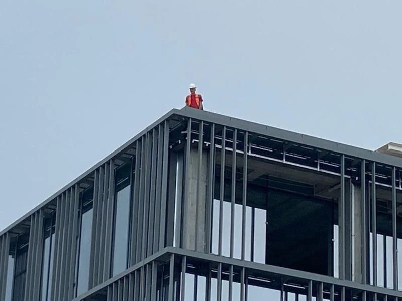 Tekirdağ Çerkezköy Organize Sanayi Bölgesi’ndeki bir fabrikanın yapım işinin üstlenen taşeron firmanın alt yüklenicisi, bu ayki hak edişini alamayınca soluğu çatıda aldı.