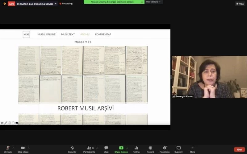 Edebiyat arşivleri ve genel olarak arşivcilik üstüne konuşmaya çalışmanın bir sürü ‘neden yok!’ sorusunu beraberinde getirdiğini ifade ederek sözlerine başlayan Sevengül Sönmez, “Sanki ‘arşiv eşittir bir yokluk’muş hissi var. Tabii, bir sürü bir sürü yere de dayanabilir tarihsel olarak bu bakışı besleyen süreç. O yüzden genel olarak bir yokluk anlatısı değil, daha çok olanları göstermek istiyorum. Neler yapıldığına şöyle bir genel olarak bakmak amacıyla ve bu noktada da örnekler üzerinden yol gösterici bir sunum hazırladım. ‘Bizde arşiv yok. Bizde edebiyat arşivi yok’ diye başlayan bir cümle kurarak başlamak istiyordum. Ama öyle olmadığını sunumu hazırlarken çokça fark ettiğim için bir sürü arşiv örneği üzerine odaklanacak bir sunumum var. ‘Arşivden Kitaba: Edebiyat Arşivleri’ diye bir başlıkla bugün edebiyat arşivi nedir, dünyadan ve Türkiye’den örnekler nelerdir, edebiyat arşivleri ne işe yarar, edebiyat arşivlerinde neler yapılabilir gibi sorulardan ilerlemek istiyorum. Ekranda paylaştığım fotoğraf Marbach arşivinde bir çalışma sırasında çekilmiş fotoğraflardan biri. Bu fotoğrafları Alman edebiyat arşivinden aldım. Edebiyat arşivlerindeki çalışmalar, bir yazardan ya da şairden geriye kalanların edebi malzemeye nasıl bir arka plan oluşturduğunun ortaya çıkartılması ve yayımlanmış eserleriyle eserlerinin müsveddeleri, kişisel mektupları, biriktirdiği gazete, dergi kesikleri, aldığı notlar gibi kişisel arşiv malzemesi arasındaki çift taraflı ilişkinin ortaya koyulmasını sağlar. Arşivler şimdi bir çırpıda sayamasak bile kişisel pek çok malzemeyi içeren kimlikler, raporlar, hastalık kayıtları, özel yazışmalar, mektupların bir parçası olarak daha kişisel notlar, hatta alışveriş listeleri bile sayılabilir, pek çok şeyi kapsar. Dolayısıyla sadece bir edebiyat arşivi değil, aynı zamanda çok yönlü okumalara olanak sağlayan araçlardır bunlar” dedi.