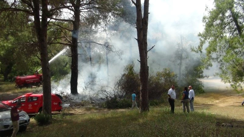 Sezon hazırlığı yapan çamlık yakınındaki bir otelin çalışanları, çamlığın orta bölümünden dumanlar ve alevler yükselmesi üzerine ihbarda bulunduktan sonra bölgeye giderek yangını söndürmeye çalıştı. Alevler, kuru yapraklar ve bitkiler nedeniyle kısa sürede büyük bir çam ağacı ile çevresinde bulunan makilik alanı etkisi altına aldı. İhbar üzerine kısa sürede olay yerine gelen Antalya Büyükşehir Belediyesi ve Manavgat Orman İşletme Müdürlüğüne bağlı ekipler, yangını büyümeden söndürdü.
