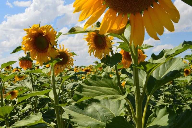 Ayçiçeği tarımının yoğun olarak yapıldığı Ağrı’da, ayçiçeği tarlaları sarıya bürünerek ortaya eşsiz bir manzara çıkardı.