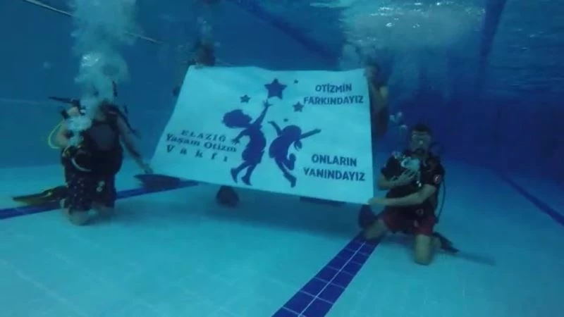 Munzur Üniversitesi Pertek Sakine Genç Meslek Yüksekokulu su altı teknolojileri bölüm hocası ve öğrencileri, Elazığ’da bulunan Otizm Vakfı için suyun altına girerek ‘Otizmin farkındayız onların yanındayız’ pankartı açıp beden dili ile otizme destek oldu.