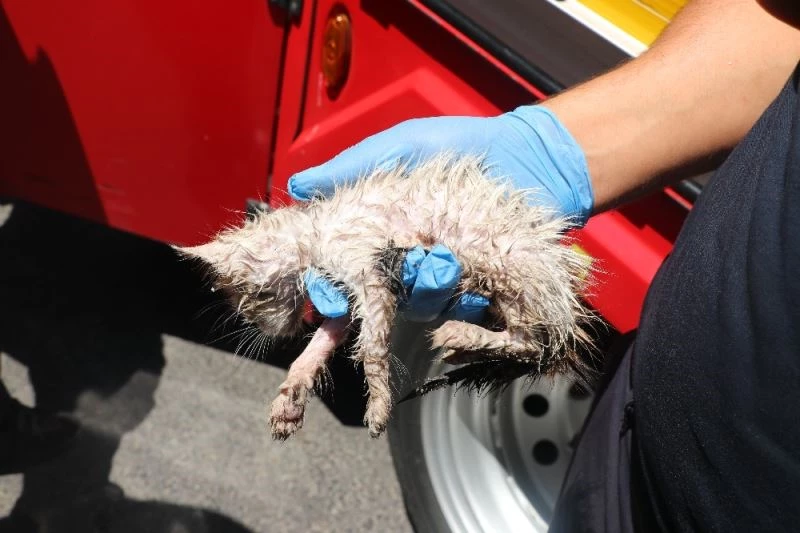 Su borusunda 3 gün kalan yavru kedi itfaiye ekipleri tarafından kurtarıldı