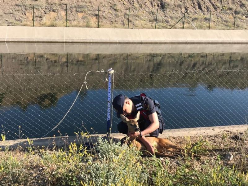 Edinilen bilgiye göre Berk Köyü yakınlarındaki Kızılırmak sulama kanalına düşen karaca akıntıya kapılarak sürüklenmeye başladı. Yapılan ihbar üzerine harekete geçen jandarma ekipleri suya attıkları ip yardımı ile karaca’yı boğulmaktan kurtardı. Su kanalından çıkartılan karaca kurulandıktan sonra yapılan kontrolde sağlık durumu iyi olduğu belirlenince doğaya salındı.