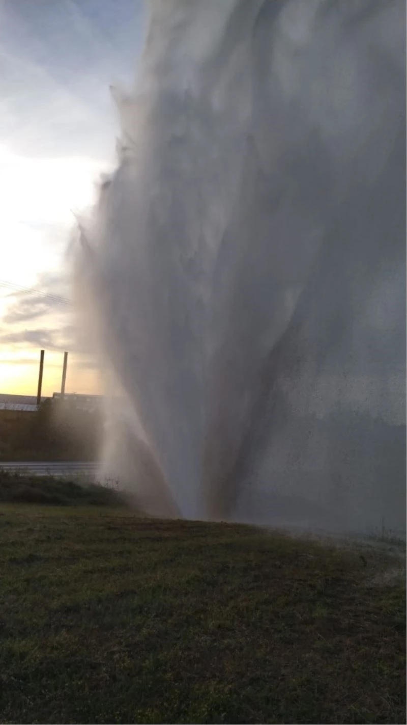 Muratlı-B.Karıştıran karayolu üzerinde seyir eden sürücüler metrelerce yükseğe fışkıran suları görünce şaşırdı. Bazı sürücüler ise araçlarını durdurarak manzaranın resmini çekmeyi tercih etti.