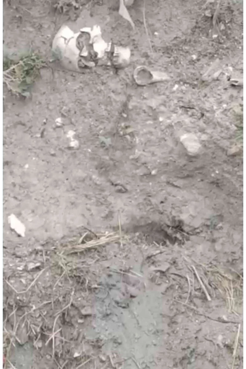 Çankırı’nın Yapraklı ilçesinde yağmur sularının çekilmesiyle yaşanan göçükte insan kemikleri ortaya çıktı.