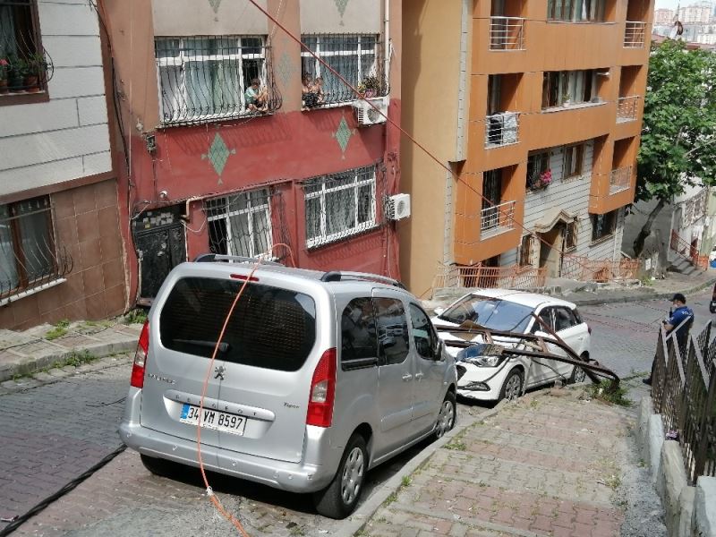 Kağıthane’de sünger yüklü kamyon, elektrik direğini otomobillerin üzerine devirdi. Olayda ölen ya da yaralanan olmazken, mahallede korku yaşandı.