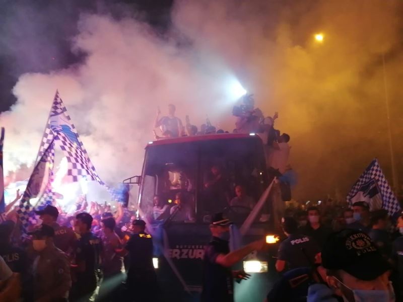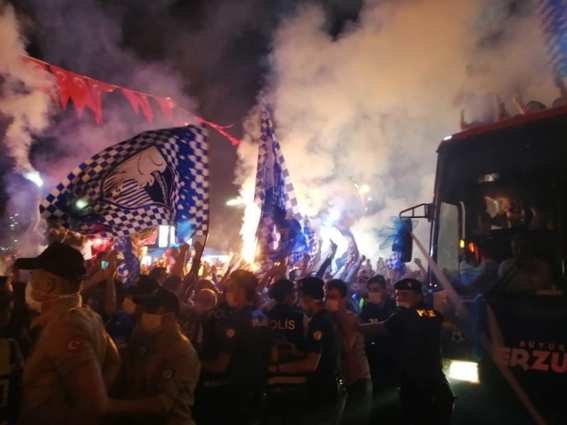 Süper Lig’e çıkan Erzurumspor futbolcularını, taraftarlar coşkuyla karşıladı