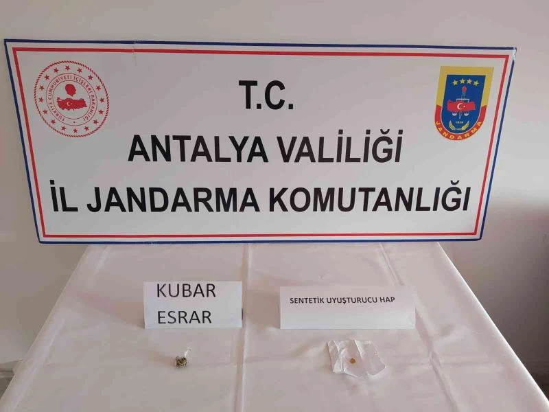 Antalya’nın Alanya ilçesinde bir yolcunun valizinde şüphe üzerine yapılan aramada 1 adet sentetik uyuşturucu hap, 5 gram kubar esrar ele geçirildi.