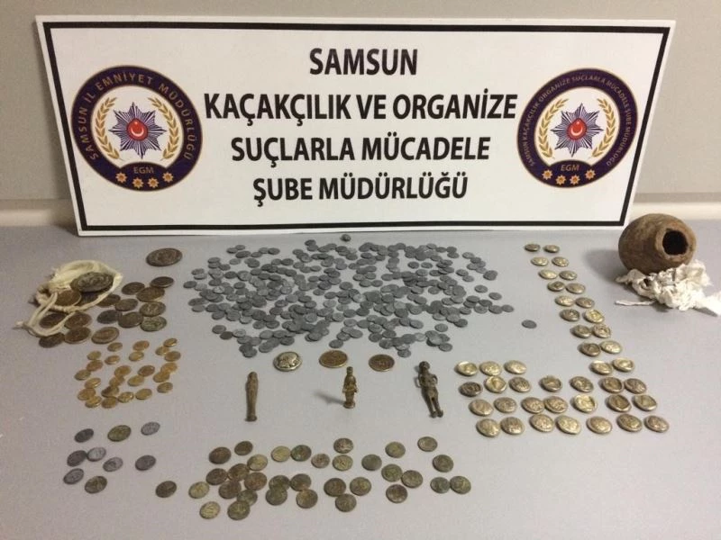 Olay, Samsun’un İlkadım ilçesi Zeytinlik Mahallesi Barış Bulvarı üzerinde meydana geldi. Edinilen bilgiye göre, Samsun Emniyet Müdürlüğü Asayiş Şube Müdürlüğü Motosikletli ve Bisikletli Polis Timleri şüphe üzerine durdurdukları araçta yaptıkları aramada 429 adet sikke, 3 adet heykel ve 1 adet toprak küp ele geçirdi. Olayla ilgili Gürcistan uyruklu bir kişi gözaltına alınarak Samsun Emniyet Müdürlüğü Kaçakçılık ve Organize Suçlarla Mücadele Şube Müdürlüğü ekiplerine teslim edildi.