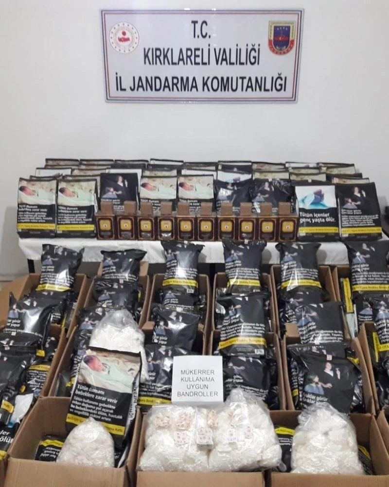 Kırklareli İl Jandarma Komutanlığı ekipleri kaçakçılık olaylarına geçit vermiyor. Jandarma ekiplerince Kırklareli’nin Pınarhisar ilçesinde şüphe üzerine durdurulan bir kamyonette arama yapıldı. Aramalarda, 320 kilogram TAPDK bandrollü kaçak tütün, 50 kilogram kaçak çay, 120 adet tekrar kullanım için toplanmış TAPDK bandrolü, 6 bin 750 adet sigara sarma kağıdı ve 24 bin 750 adet sigara filtresi ele geçirildi.