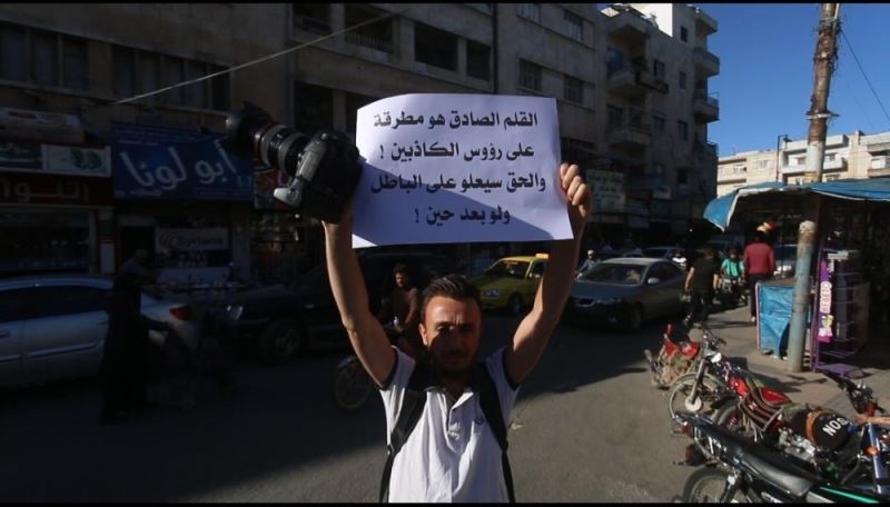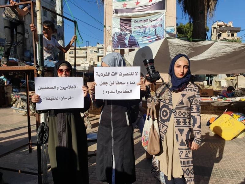 Suriye’nin İdlib kentinde Suriyeli gazeteciler PKK/ YPG terör örgütleri ve Esad rejimi tarafından uğradıkları saldırıları protesto etti.