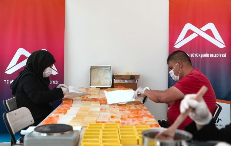 Büyükşehir Belediyesi Toroslar Engelsiz Mesleki Eğitim Merkezi yerleşkesindeki 2 atölyede 8 Suriyeli sığınmacı, sabun üretimine başladı. Üretimin ilk haftasında 4 bin adet organik sabun üretildi. Çeşitli şekillerdeki sabunları paketleyen atölye çalışanları, paketlerin içerisine Farsça ve Arapça yazıların yer aldığı hijyen bilgilendirme broşürleri de ekledi.