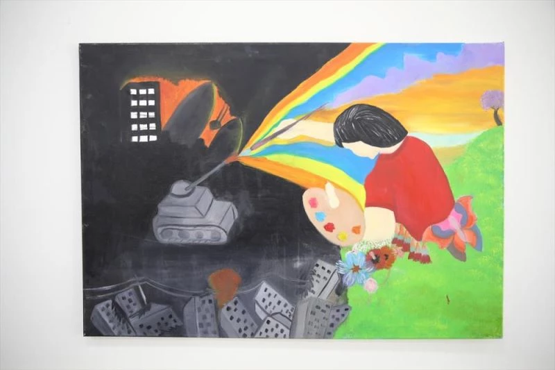 Yaslari 10 ile 16 arasinda degisen 40 Suriyeli yetim, savasin insanlar üzerindeki olumsuz etkilerini ve yasanan trajedi ile savas sonrasindaki hayallerini tuvale isledi.