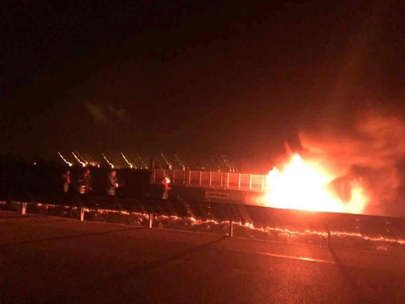 Olay, Afyonkarahisar-Konya karayolu Çay ilçesi girişinde meydana geldi. Edinilen bilgilere göre, İscehisar’dan aldığı mermer yükünü Suriye’ye götürmek üzere yola çıkan N.B., idaresindeki 02 DH 463 plakalı tırın Çay ilçesi girişinden henüz belirlenemeyen bir sebepten ötürü lastikleri alev aldı. Arka lastiklerin yandığını gören sürücü aracı yol kenarına park ederek diğer sürücülerden yardım istedi. Çevreden geçen sürücüler araçlarındaki yangın tüpleri ile alev alan lastiklere müdahale ederek, yangının dorseye sıçramasının önüne geçti. Ardından itfaiyeye haber verildi. İhbar üzerine olay yerine gelen itfaiye ekipleri araçta soğutma çalışması yaptı. Ölen ya da yaralananın olmadığı olayla ilgili inceleme başlatıldı.