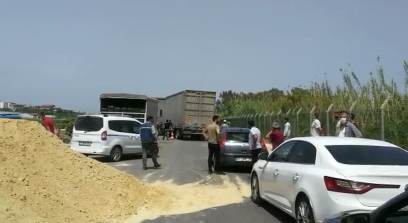 Kaza dolayısıyla sıcaklığın 38 dereceyi geçtiği D-400 karayolunda uzun araç kuyruğu oluştu.