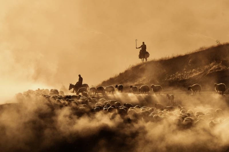 Tatvan ilçesine bağlı Kıyıdüzü’ndeki çobanlar, binlerce koyunu tarlalara ekilen buğdaylara ve ekinlere zarar vermemesi için toprak ve tozla kaplı vadiden götürmek zorunda kalıyor. Her gün binlerce koyunu süt sağımı için sürüler halinde köye getiren çobanlar, süt sağımından sonra gün batımına doğru sönmüş bir volkanik dağ olan Nemrut Dağı eteklerine doğru 7 kilometrelik tozlu yolculuğa başlıyor. Çobanlar ve koyun sürüleri günde 2 defa Nemrut Dağı’na gidiş geliş yaparak yaklaşık 15 kilometrelik tozlu yolu yürümüş oluyor. Koyun sürülerinin tozlu yolda ilerleyişi, çoban ve koyunları zorlarken gün batımına doğru oluşan kızıl renkler ise seyri doyumsuz görüntüler ortaya çıkarıyor.