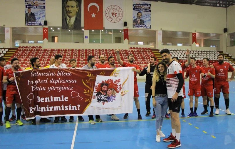 Amasya’da 1957 Suluova Hentbolspor ile Tokat Gençlik Spor Kulübü arasında oynanan maça takımlar sürpriz evlilik teklifi pankartıyla çıktı. Amasya temsilcisinin kaptanı Mehmet Keskin, müsabakayı izlemeye gelen kız arkadaşına evlenme teklif etti.