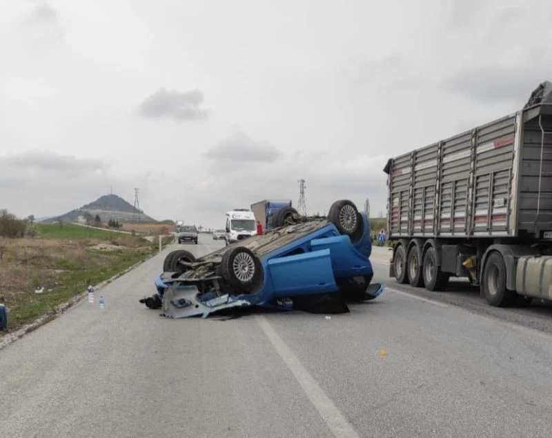 Afyonkarahisar’ın Bolvadin ilçesinde takla atan otomobil yol ortasına ters dönerek dururken, kazada araç sürücüsü yaralandı.