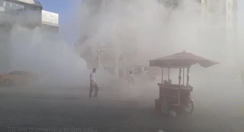 Taksim Meydanı’nda ticari taksi sürücüsü Oktay Akgül’ün arızalanan aracından yükselen dumanlar kısa sürede tüm meydanı sardı. Araçtan çıkan dumanlar nedeniyle Taksim Meydanı adeta dumanlara teslim oldu. Sürücü Akgül, "Araç partiküllü olduğundan dolayı otomatikman kendini temizliyor. Başka bir durum yok. Ben aracı durdurmuştum. Çalışması gerekiyor. Çalıştığı zaman duman atıyor, kendisini temizliyor” dedi.