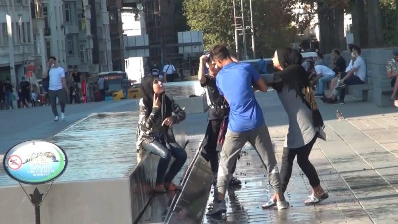 Son günlerde İstanbul’da etkisi süren sıcak havalardan bunalan çocuklar, çözümü Taksim meydanda bulunan süs havuzlarına girmekte buldular. Çocuklar hem süs havuzuna girdiler hem de havuzdaki suyu birbirlerine atarak oyun oynadı. Zabıta ekiplerini gören çocuklar, havuz çevresinden koşarak uzaklaştı. Öte yandan, çocukların zaman zaman havuzun içerisine birbirlerini itmeleri tehlikeli anlar yaşattı. Çocuklar havuzun içindeki elektrik aksanlarından kaynaklanabilecek riskleri de hiçe saydılar. Çocukların havuzdan ayrılmasının ardından ise aynı havuza sokak köpeklerinin girdiği görüldü. Bu durum da havuza giren çocukların sağlığını tehdit edecek başka bir tehlikeyi daha ortaya çıkardı.