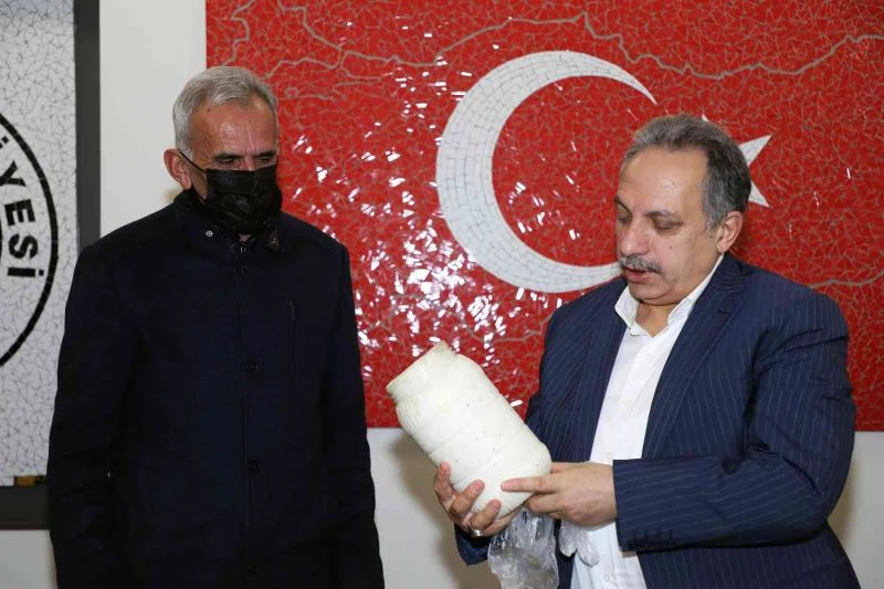 Talas ilçesindeki çiftçiler, kendilerine sağlanan tohum desteğinden tarım makinalarına, mahallelerinde yapılan yol çalışmalarından sosyal tesislere kadar birçok hizmet ve yatırımdan dolayı Talas Belediye Başkanı Mustafa Yalçın’a teşekkür plaketi takdim etti.