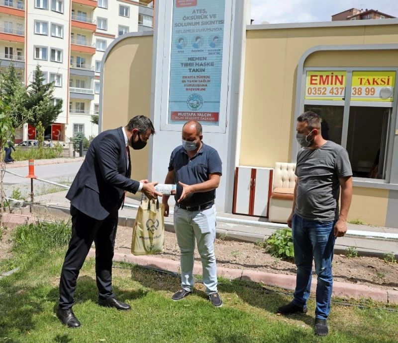 Yeni tip korona virüsle (Covid-19) mücadele çalışmalarını hız kesmeden sürdüren Talas Belediyesi, ilçe genelindeki iş yerleri ve apartmanlara dağıttığı hijyen paketi uygulamasını taksi duraklarında da sürdürdü.