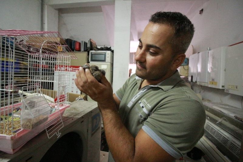 Klimanın içinden çıkan yavru kumruları, daha önce başka kuşlar beslediği kafesinde besleyerek büyüteceğini söyleyen Atlı, kumruları büyüdükten sonra yeniden doğaya salacaklarını belirtti.