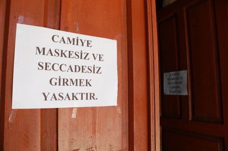 Cami kapısına, ’Maskesiz ve seccadesiz girmek yasaktır’ uyarısının olduğu yazı asıldı. Camide yoğunluk oluşmadığı gözlenirken, namaz kılmak için gelen vatandaşların seccadelerini yanlarında getirdiği görüldü. Maskelerini namaz boyunca yüzlerinden çıkarmayan cemaat, sosyal mesafeli bir şekilde saf tuttu. Aynı zamanda caminin girişine dezenfektan koyulduğu ve cemaatin giriş ve çıkışlarda ellerini dezenfekte ettikleri görüldü.