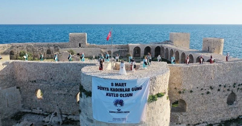 Mersin’in Erdemli ilçesinde UNESCO Dünya Mirası Geçici Listesi’nde bulunan tarihi Kızkalesi’nde 33 kadın, kadın haklarına dikkat çekmek için ritim tuttu.