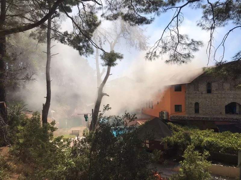 Antalya’da tarihi Selçuklu hamamının çatısında çıkan yangın paniğe neden oldu.