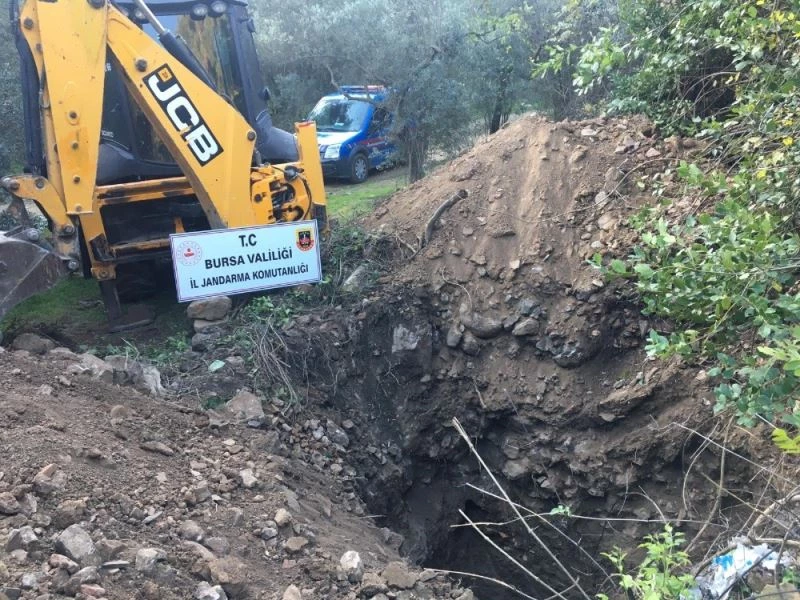 Bursa’nın Mudanya ilçesinde tarihi Tirilye Mahallesi’nde kepçe ile kaçak kazı yapan 4 kişi jandarma tarafından suçüstü yakalandı.