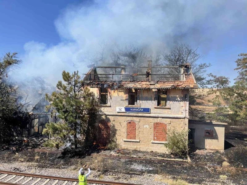 Uşak’ta 1897 senesinde açılışı yapılan Kapaklar Tren Garı, alev alev yanarak kül oldu.