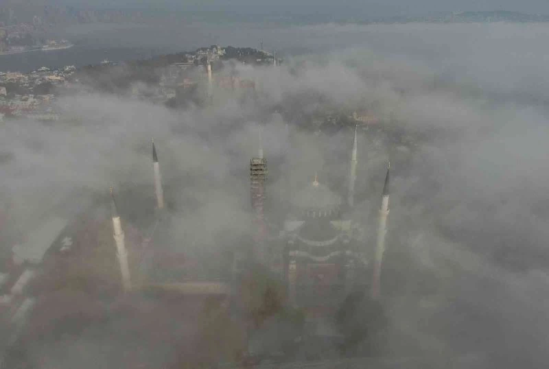 İstanbul’da etkili olan yoğun sis, tarihi yarımadada kartpostallık görüntüler oluşturdu. Ayasofya-i Kebir Cami-i Şerifi ve Sultanahmet Camii sis bulutu altında adeta kayboldu. Tarihi yarımadayı kaplayan sis bulutunun oluşturduğu masalsı anlar, drone ile havadan görüntülendi.