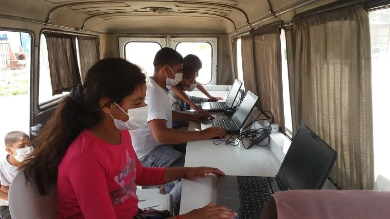 Tarım işçilerinin çocukları EBA Mobil Destek aracıyla eğitimlerini sürdürüyor