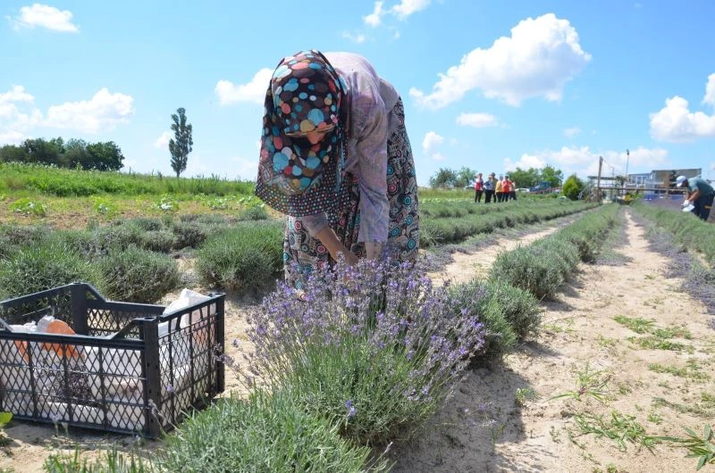 Tekirdağ’ın Çerkezköy ilçesi Kızılpınar Mahallesi’nde 3 haftalık olgunlaşma sürecinin ardından lavantaların hasadı başladı.