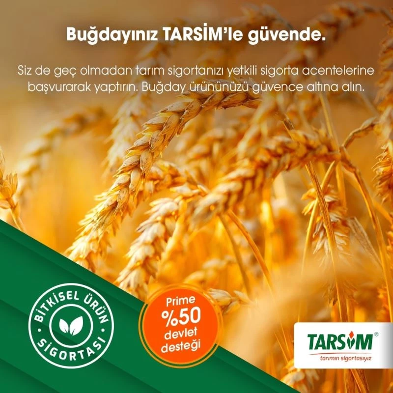İSTANBUL (İHA) – TARSİM, üreticilere yüzde 50 Devlet prim desteğinden faydalanmaları ve ‘buğday’ ürününü zamanında sigortalatmaları konusunda uyarıda bulundu.