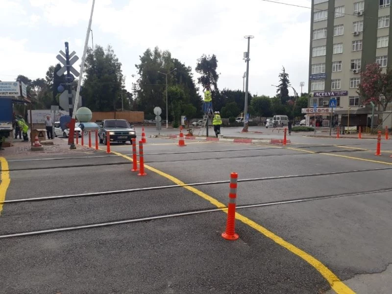 Mersin Büyükşehir Belediyesi Ulaşım Daire Başkanlığı Raylı Sistemler Şube Müdürlüğü’ne bağlı ekipler, yoğun şekilde kullanılan hemzemin geçitlerde deforme olan levhaları değiştirip, yol çizgilerini ise belirgin olacak şekilde sarı boya ile yeniden çizdi.