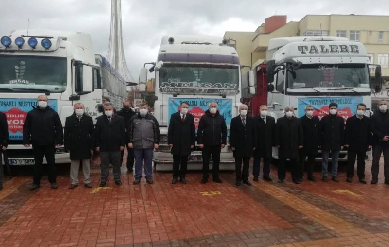 Kütahya’nın Tavşanlı ilçesinden Suriye’nin İdlip kentindeki ihtiyaç sahibi aileler için hazırlanan 3 tır dolusu un dualarla gönderildi.
