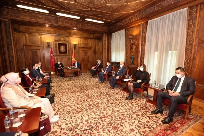 Şentop, Başbakan Zaev ile görüşmesinin ardından Kuzey Makedonya Cumhurbaşkanı Stevo Pendarovski tarafından kabul edildi.