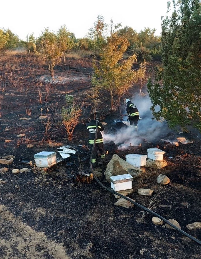 Tekirdağ’ın Malkara ilçesine bağlı Hacievhat Mahallesi Görgen Bayırı mevkiinde henüz kimin tarafından çıkarıldığı belirlenemeyen anız yangını, rüzgarın da etkisiyle büyüyerek bölgede arıcılık yapan Hüseyin Can’a ait arı kovanlarına sıçradı.
